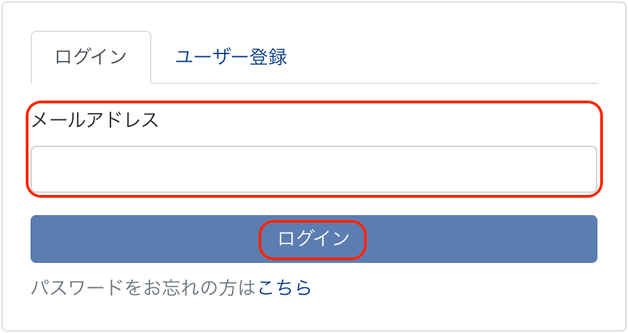 - ユーザー登録されていない場合は、以下のエラーが出ますので、メールアドレスの確認をしていただくか、ユーザー登録をしていない場合はまずはご登録をお願いします