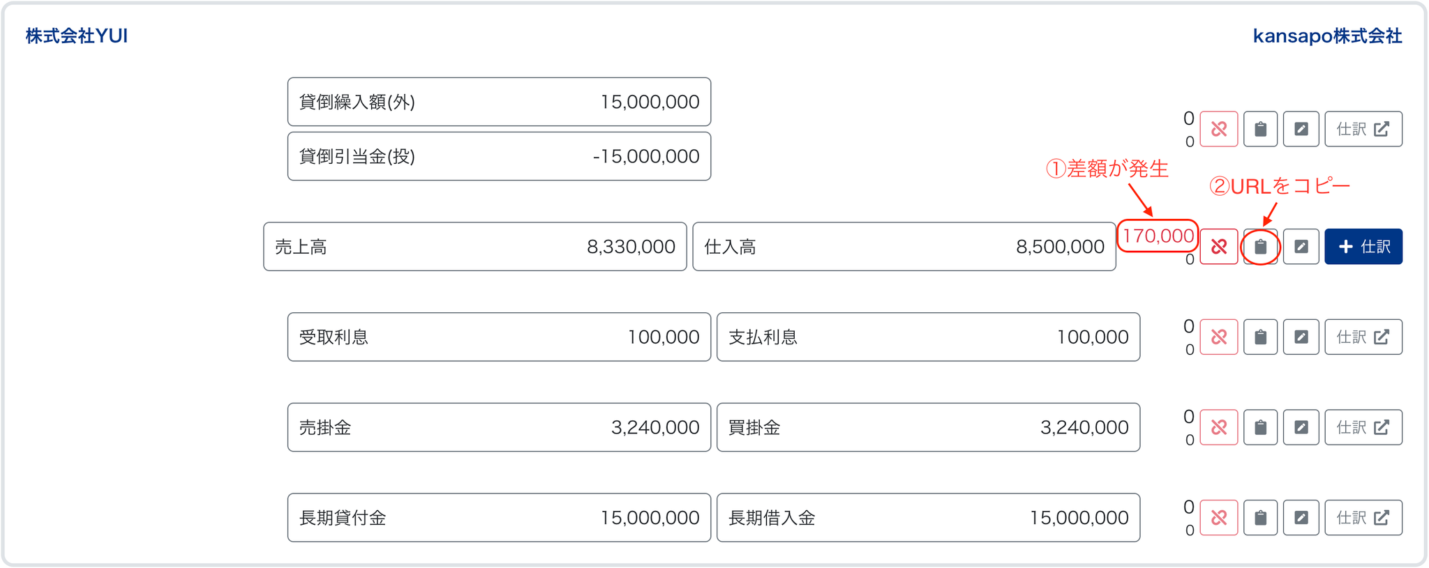 - 単体を修正して再度YUIに同期して再照合し、差異が解消されたことを確認します(その後仕訳作成へ)