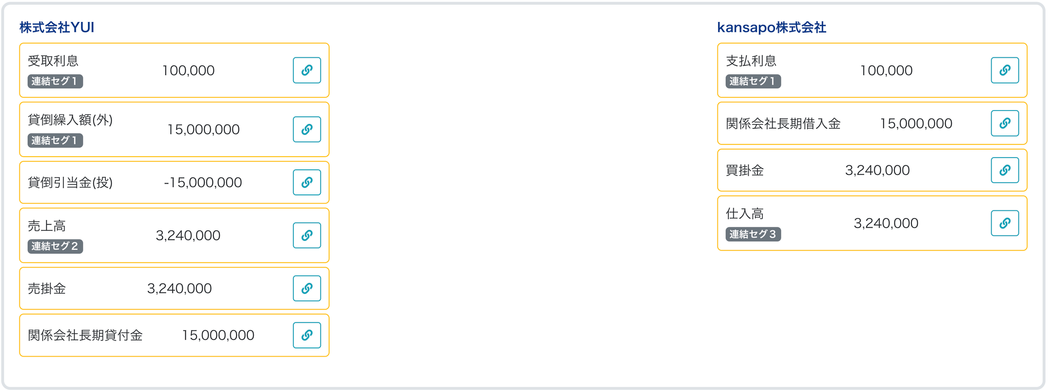 2①-1 債権債務取引高タブでは個別連結PKGで入力した内容が一覧で表示されます