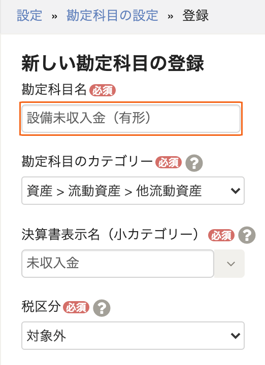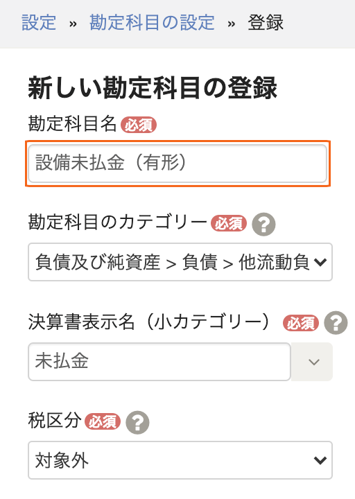 - freeeの設定→勘定科目の設定画面にて新規作成してください