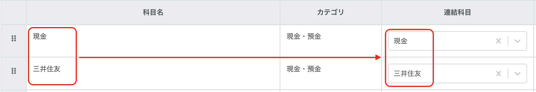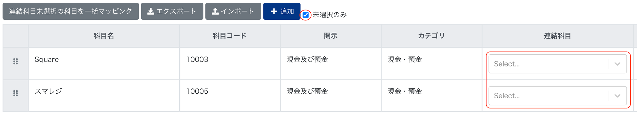 4-2 「連結科目」と同じ名称の単体科目については、自動でマッピングされます