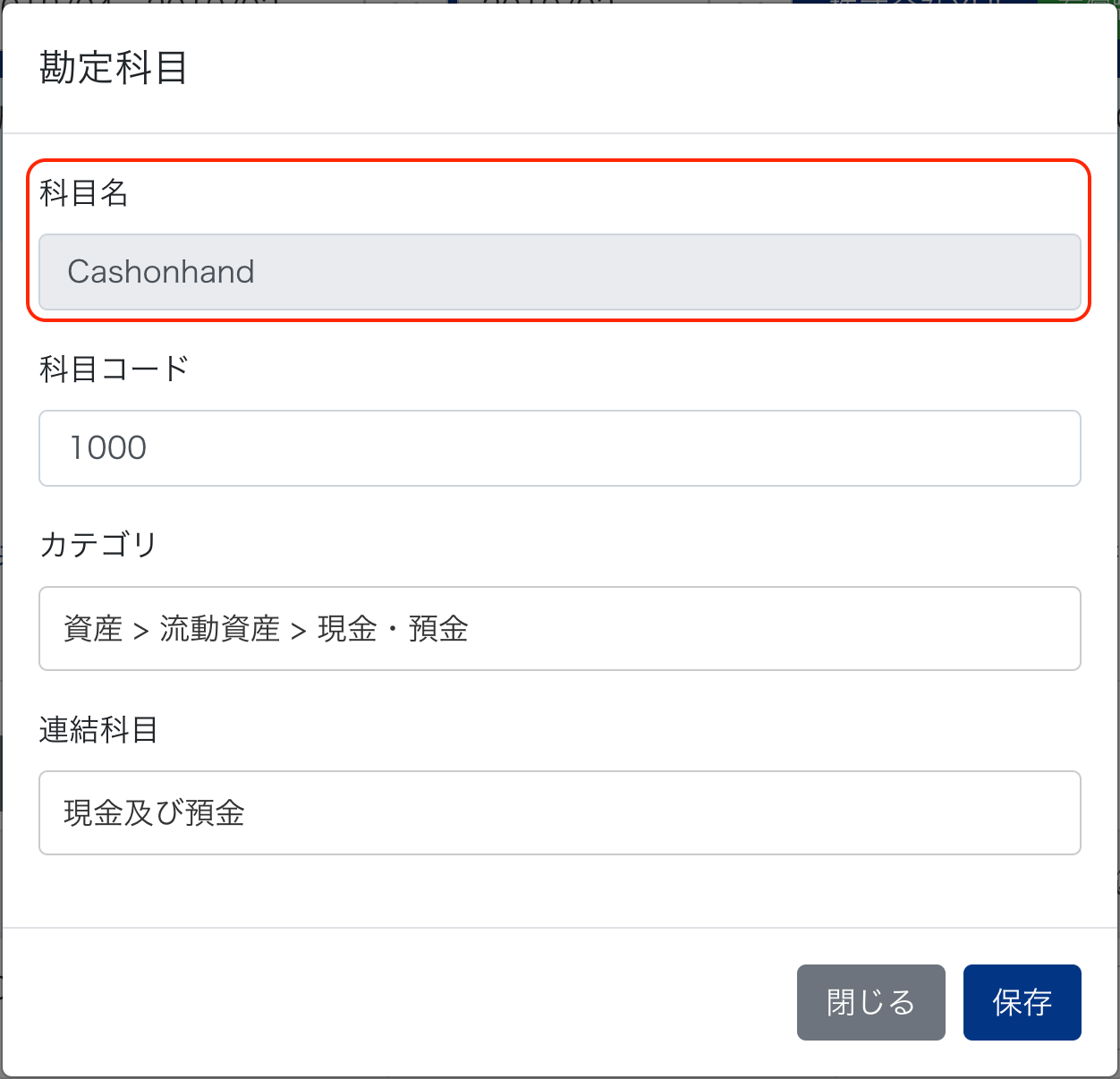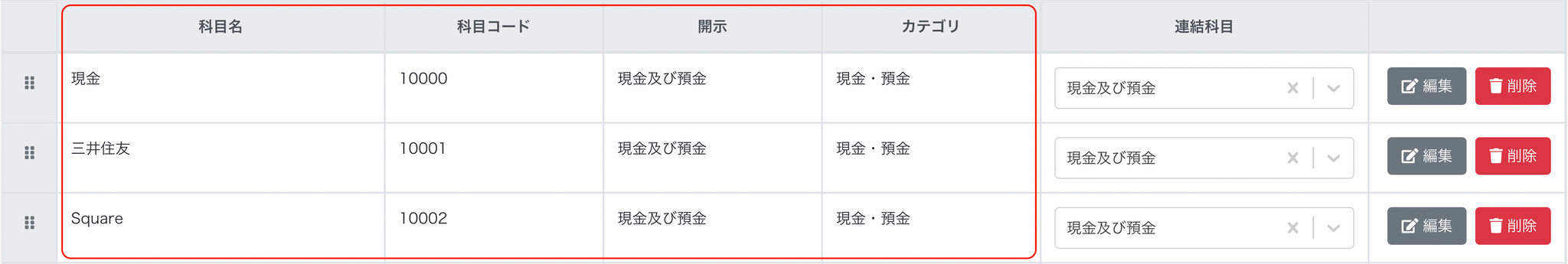 2①-2 科目名、科目コード、開示科目名とカテゴリが同期されます