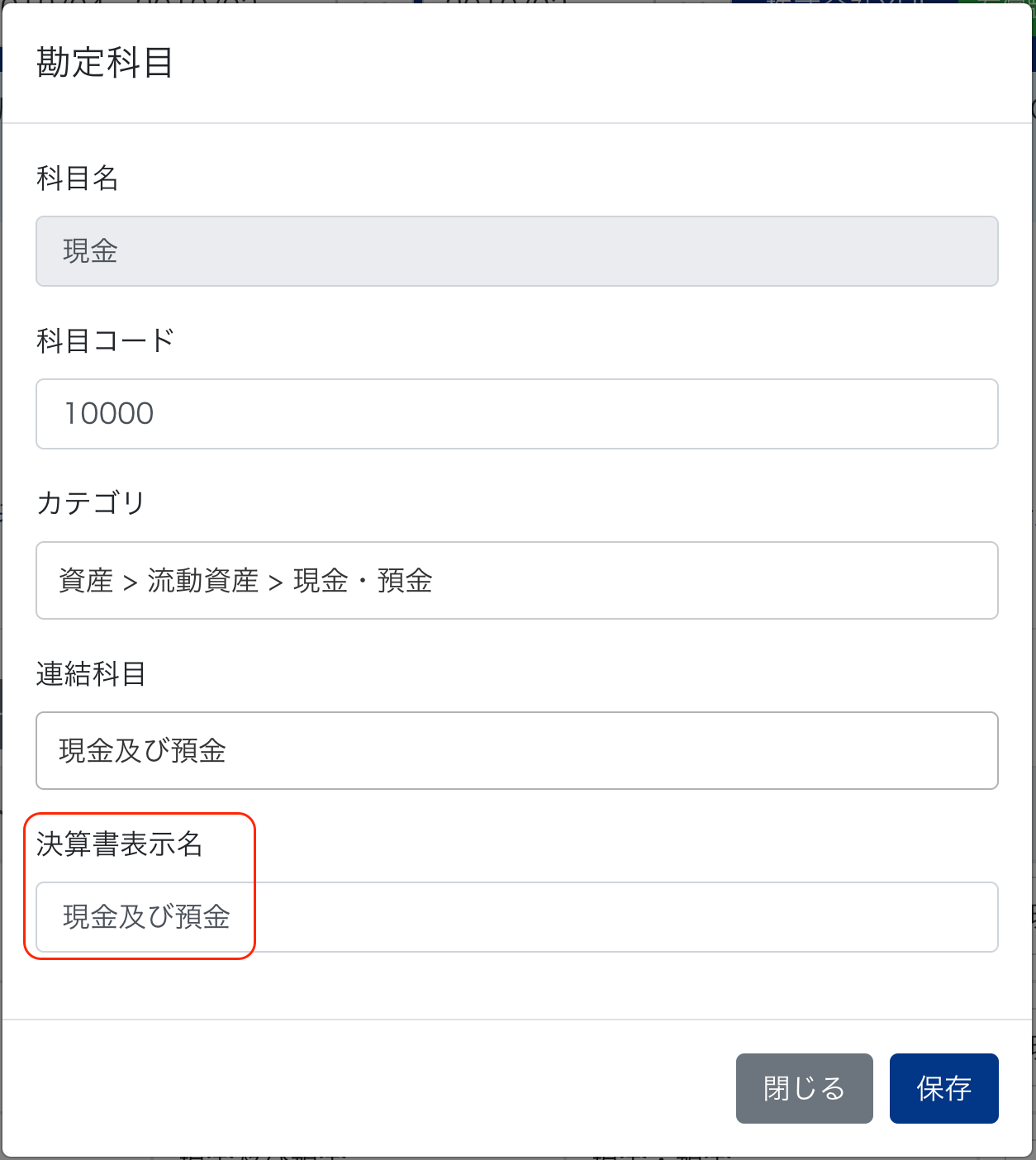 - ※API連携対象となる会計ソフトを利用している場合は、こちらで変更しても、同期することで勘定奉行クラウドの勘定科目名又はfreeeの決算書表示名に上書きされます