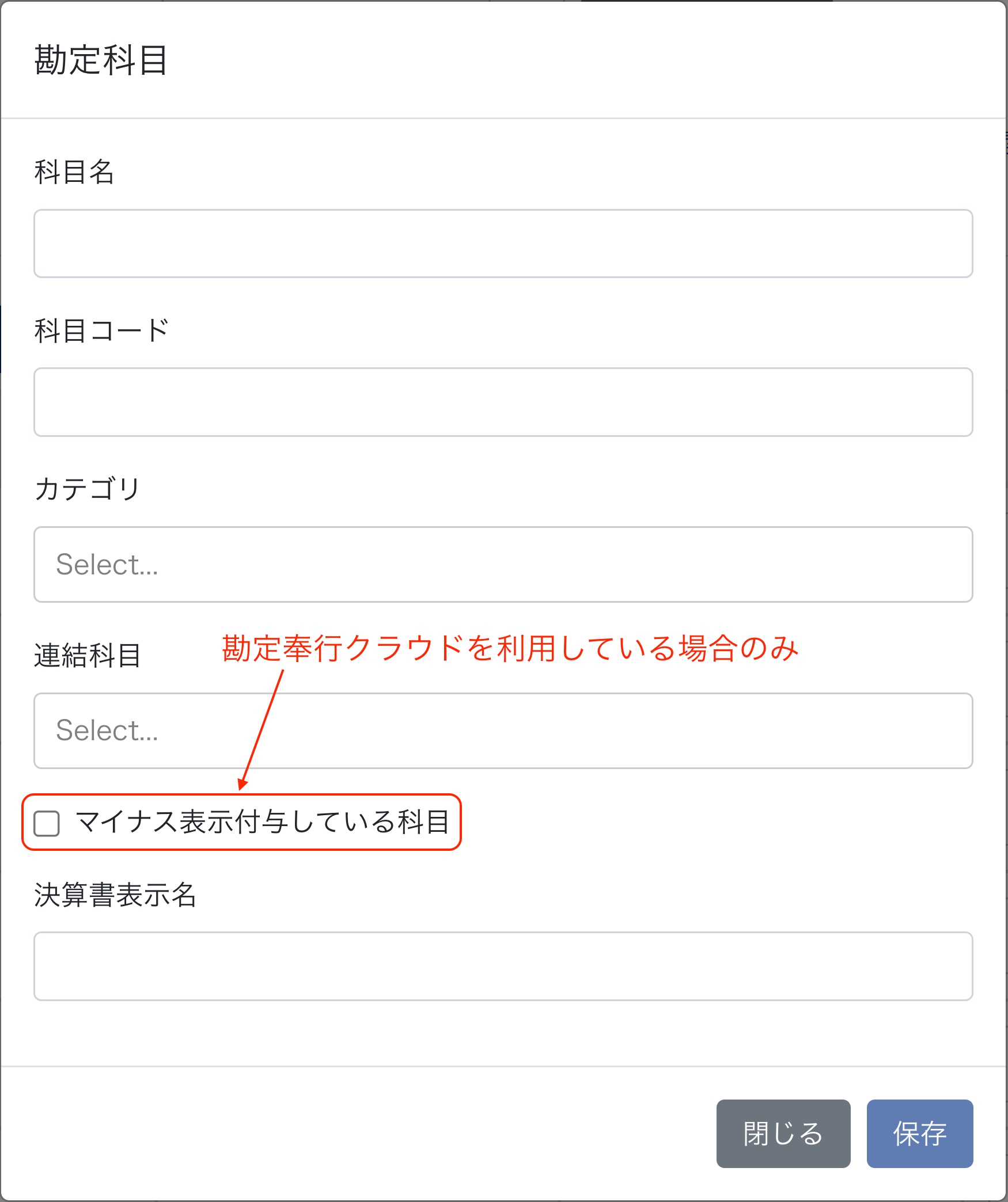 - さらに、勘定奉行クラウドを利用している場合は「マイナス表示付与している科目」というチェック項目が追加されます