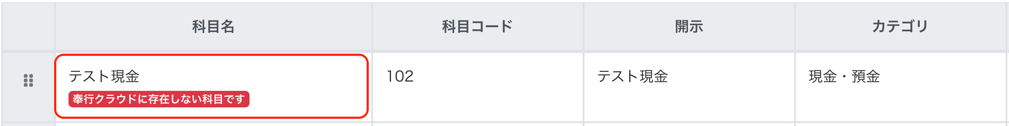 - 会計ソフト上で科目名を変更した場合には、変更前の科目が以下のように「奉行クラウドに存在しない科目です」又は「freeeに存在しない科目です」と表示されます