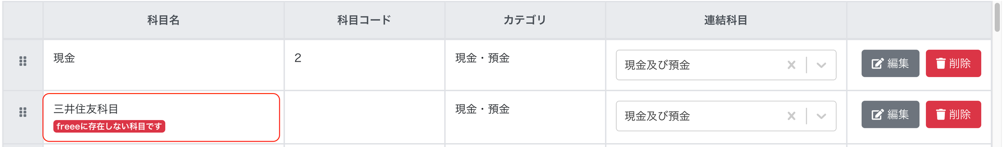 - freee会計の場合は対応する「連結科目」のみ編集可能