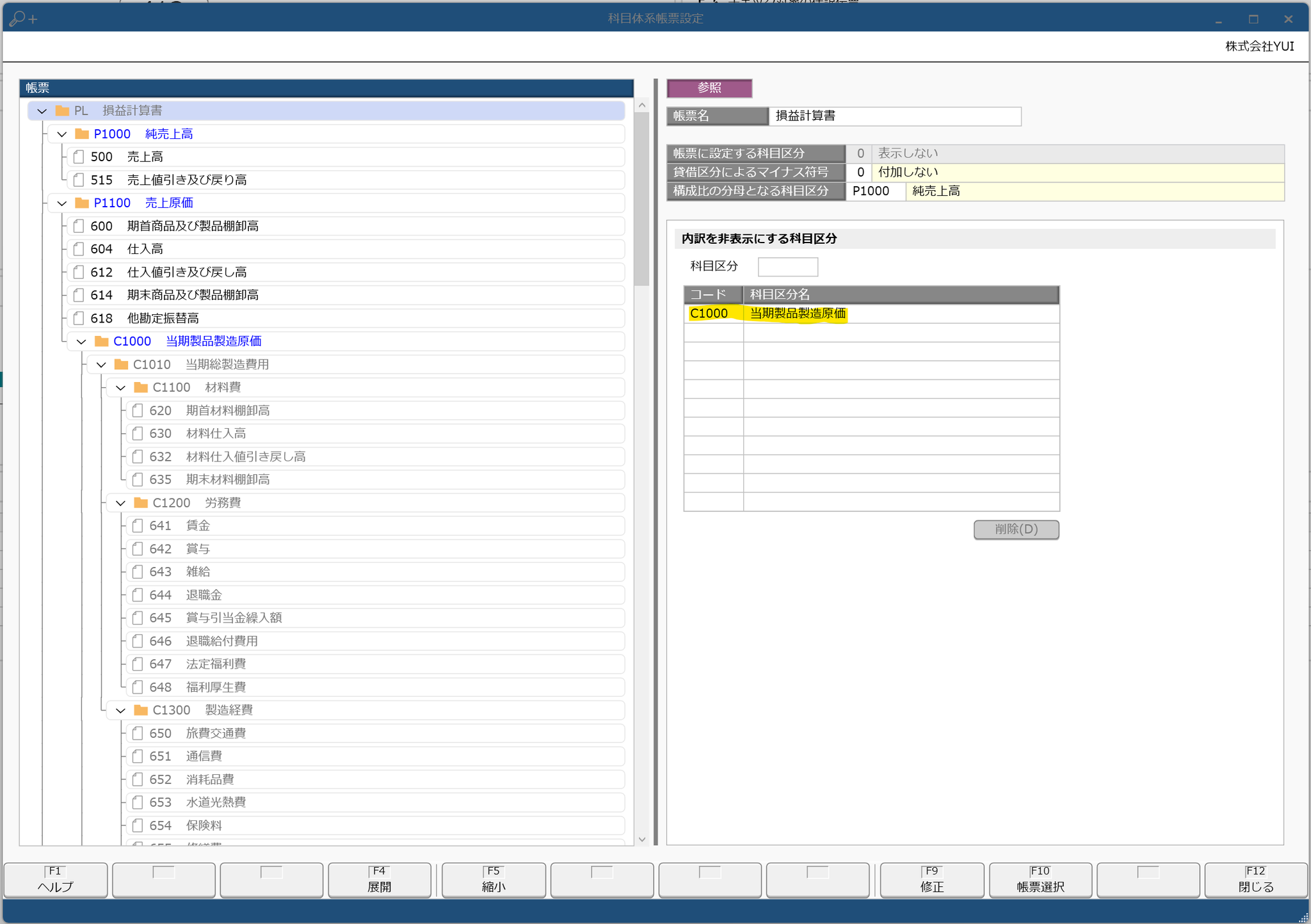 - (注!)ただし、損益計算書において、「当期製品製造原価」については「内訳を非表示にする科目区分」のままにしてください(別途同期される製造原価報告書と二重に集計されてしまうため)