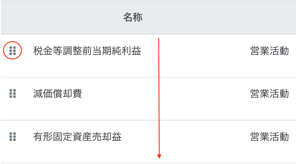 5-1 CF科目における順番が、連結CF画面におけるCF科目の表示順に反映されます