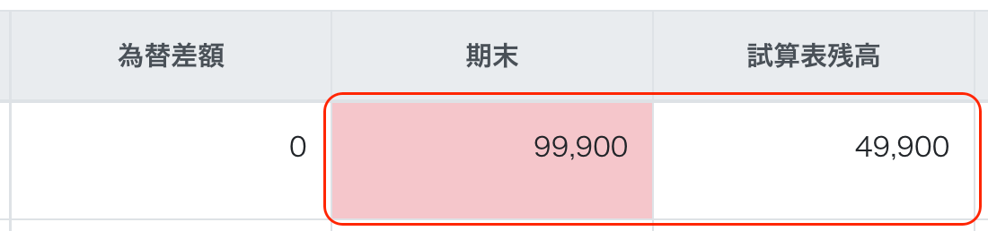 - 取り込まれた時点では「期末」と「試算表」は一致しています