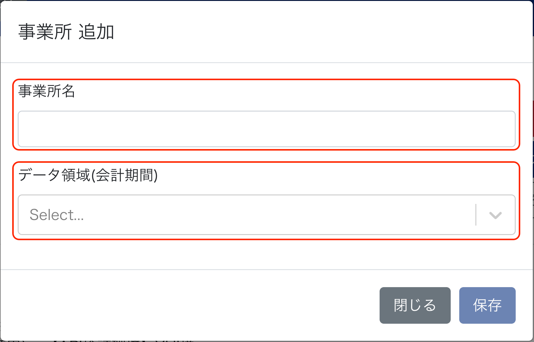 2-3 「事業所名」を入力し、データ領域(会計期間)を選択します