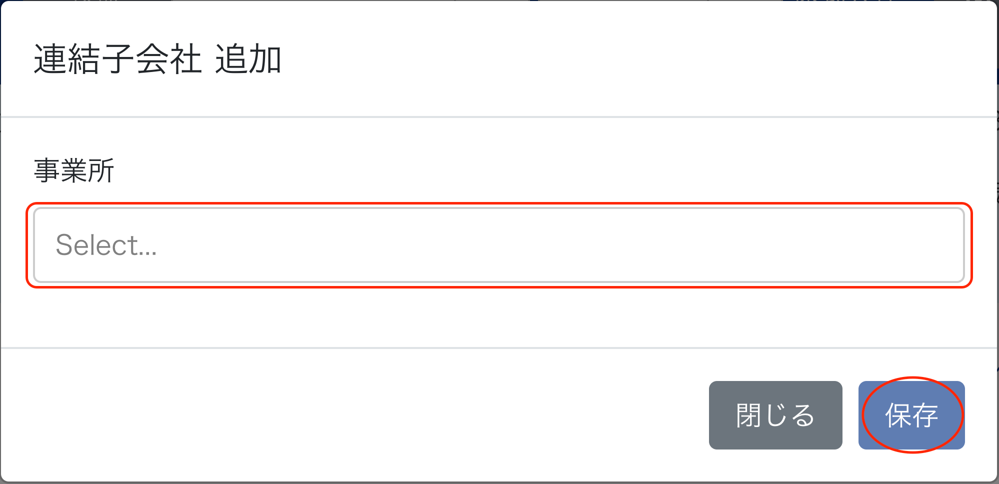 2-2 「事業所」から追加する子会社を選択します