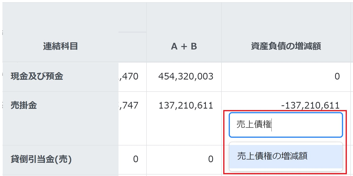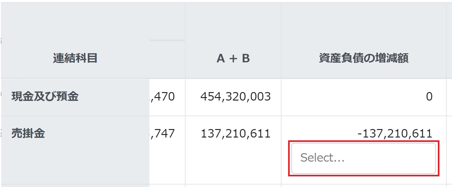 (例:資産負債の増減額にA+Bの金額が自動反映)