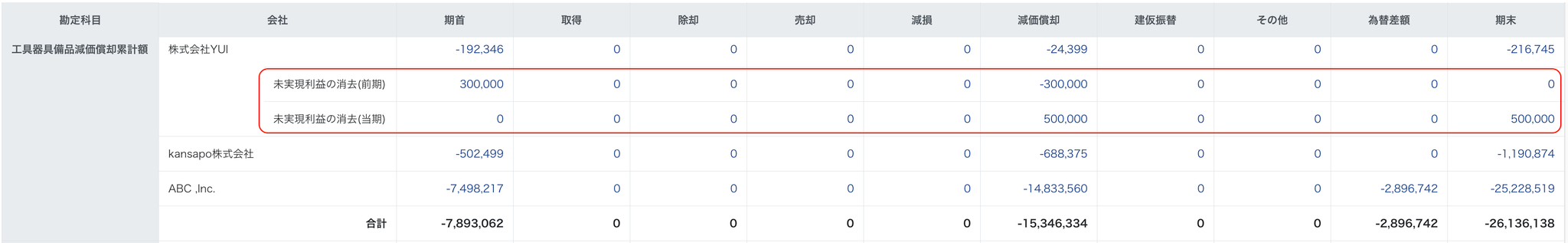 - 前期と当期に未実現利益の消去として計上された金額が増減表に反映されます