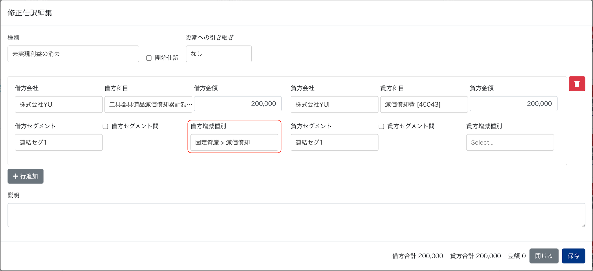 6-1 連結仕訳計上時に「増減種別」を設定します