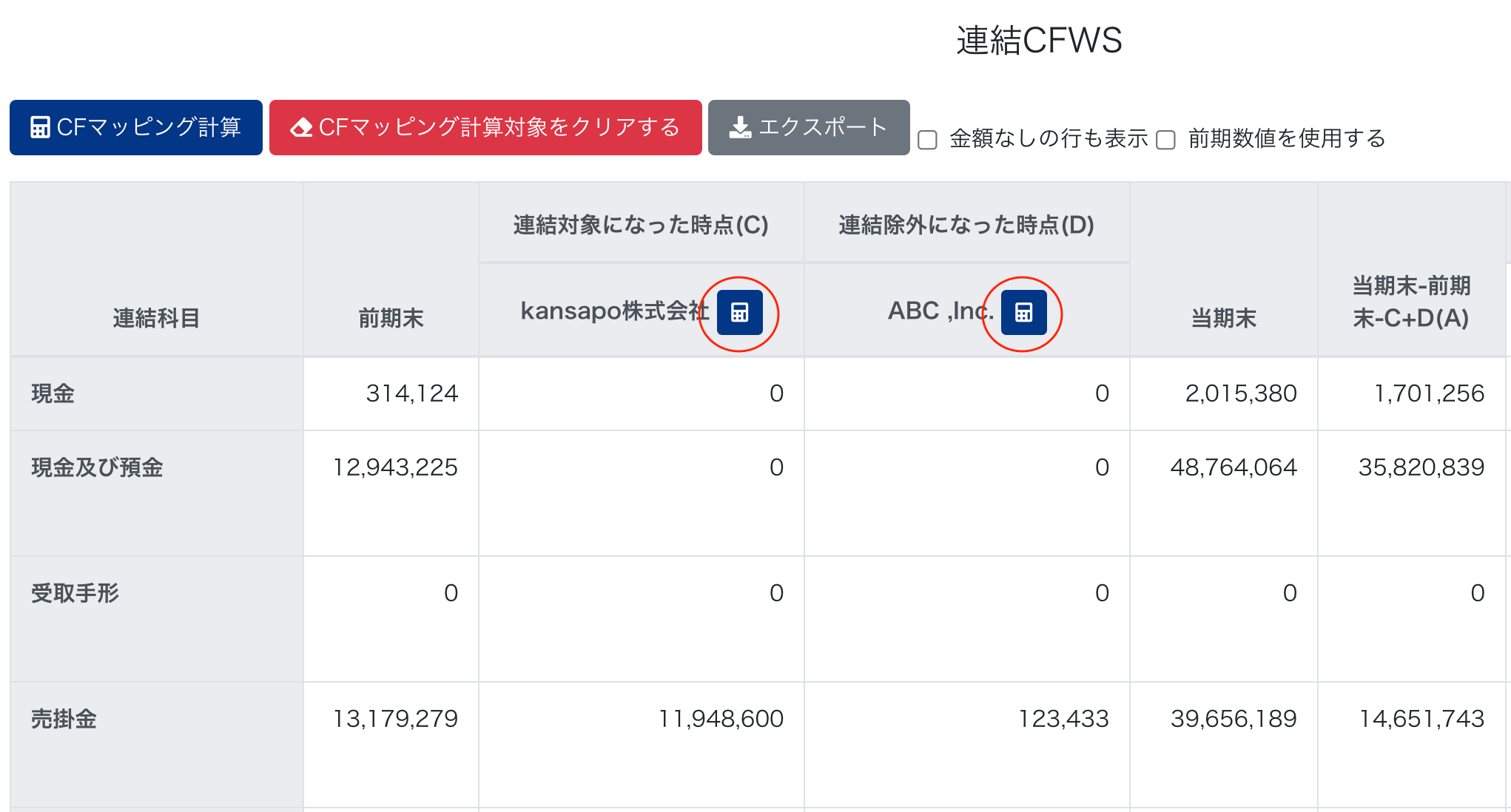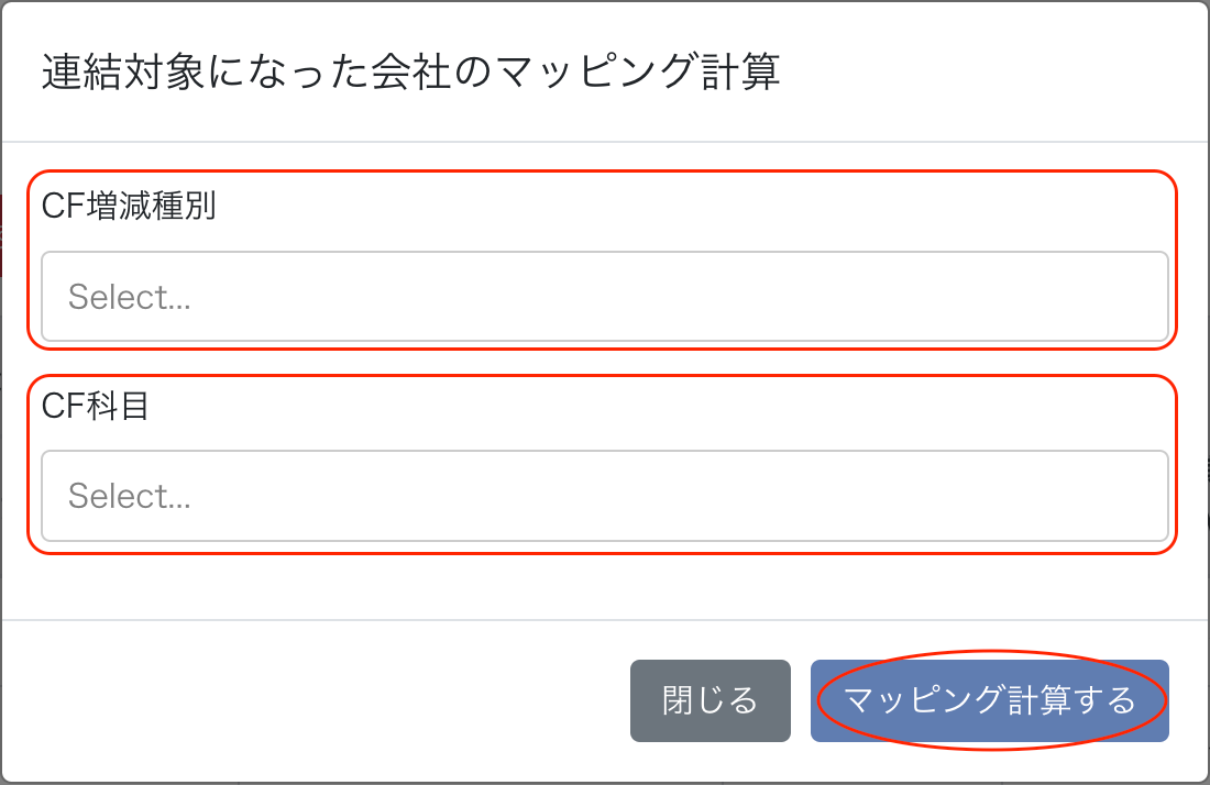 - 連結精算表の数字が更新された等により最新版の数字で改めてCFマッピング計算をしたい場合に利用します