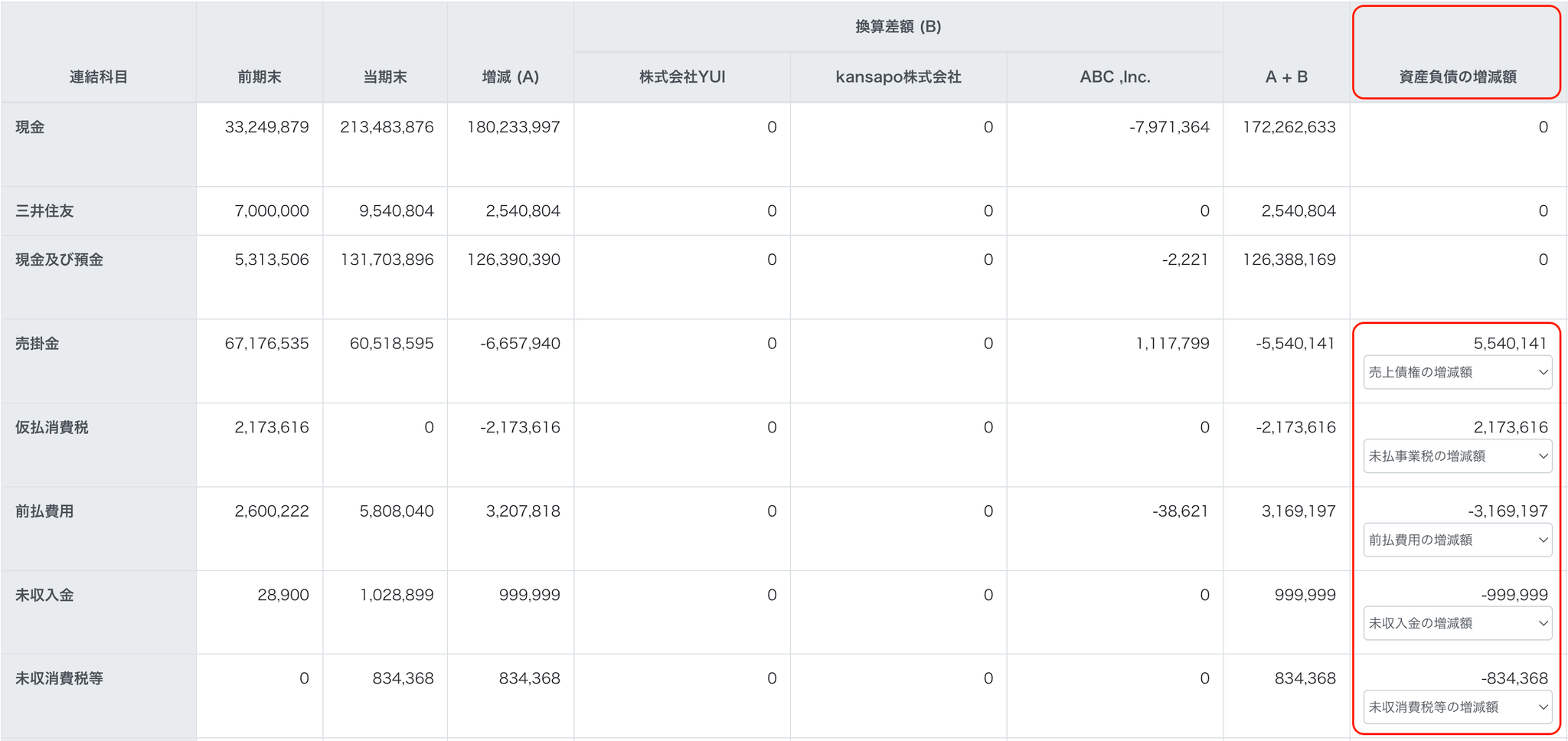 - ※資本連結仕訳などを必要に応じて反映するためのCF増減種別です