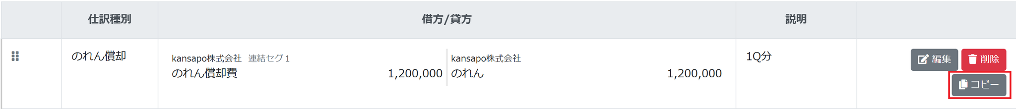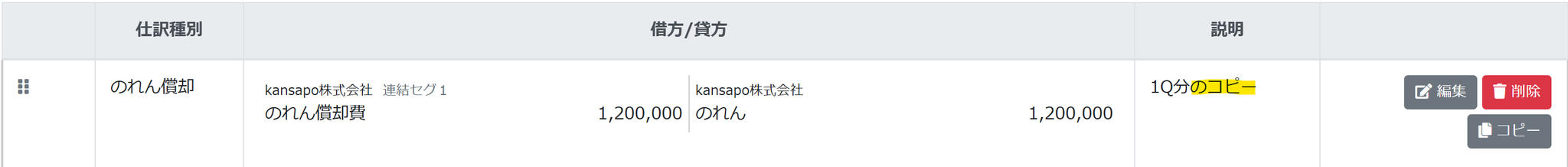 - コピーしてできた仕訳には説明欄に『のコピー』という文言が入ります