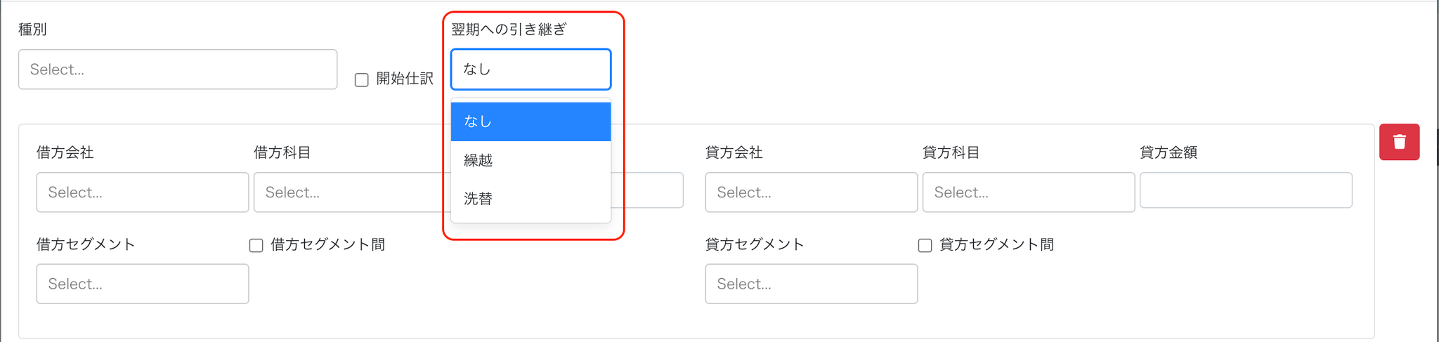 | 借方セグメント間 | 任意 | プルダウンより選択 | プルダウンより選択 |