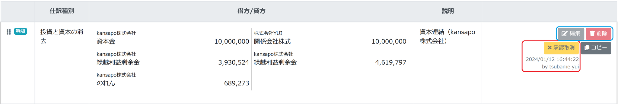 - 管理者であれば承認された仕訳の「承認取消」が可能です