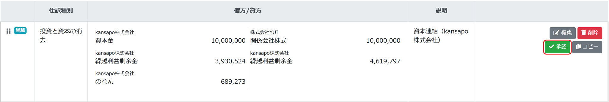 10-2 仕訳ごとに「承認」ボタンをクリックする