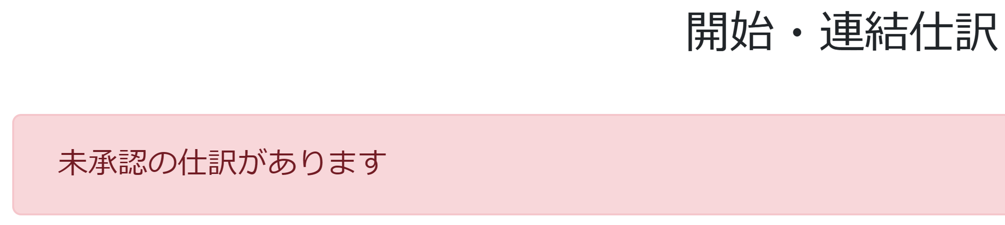 - 未承認仕訳がある場合は、開始・連結仕訳画面にて「未承認の仕訳があります」というエラーが表示されます
