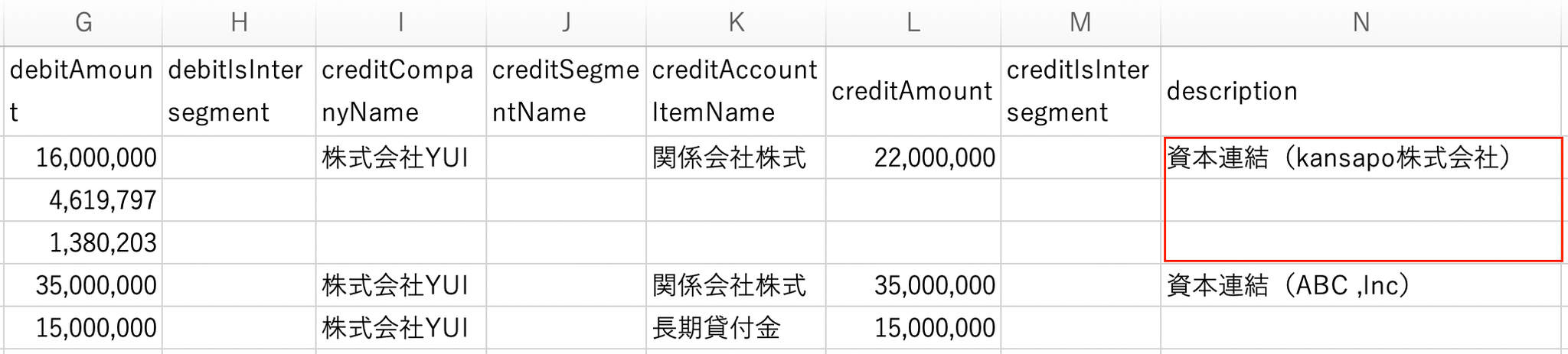 ①-2 仕訳が複数行になる場合にインポートされる「description」について