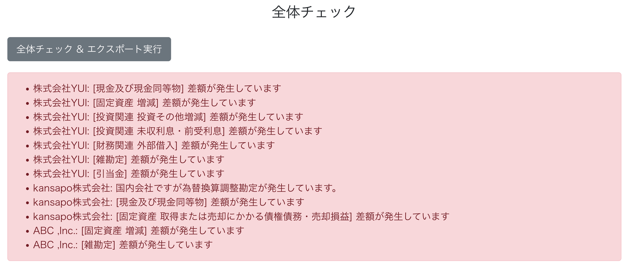 3-1 「全体チェック&エクスポート実行」ボタンをクリックします