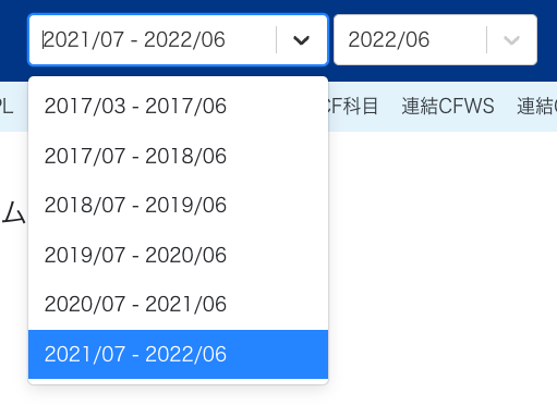 - 画面右上にある「事業年度」のプルダウンから、連結財務諸表を作成する事業年度を選択してください