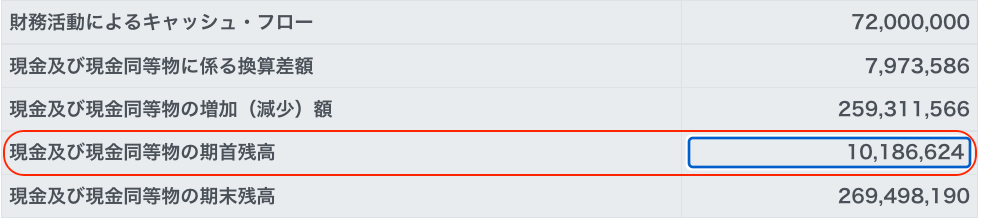 Step4 「現金及び現金同等物の期末残高」の数字を確認する