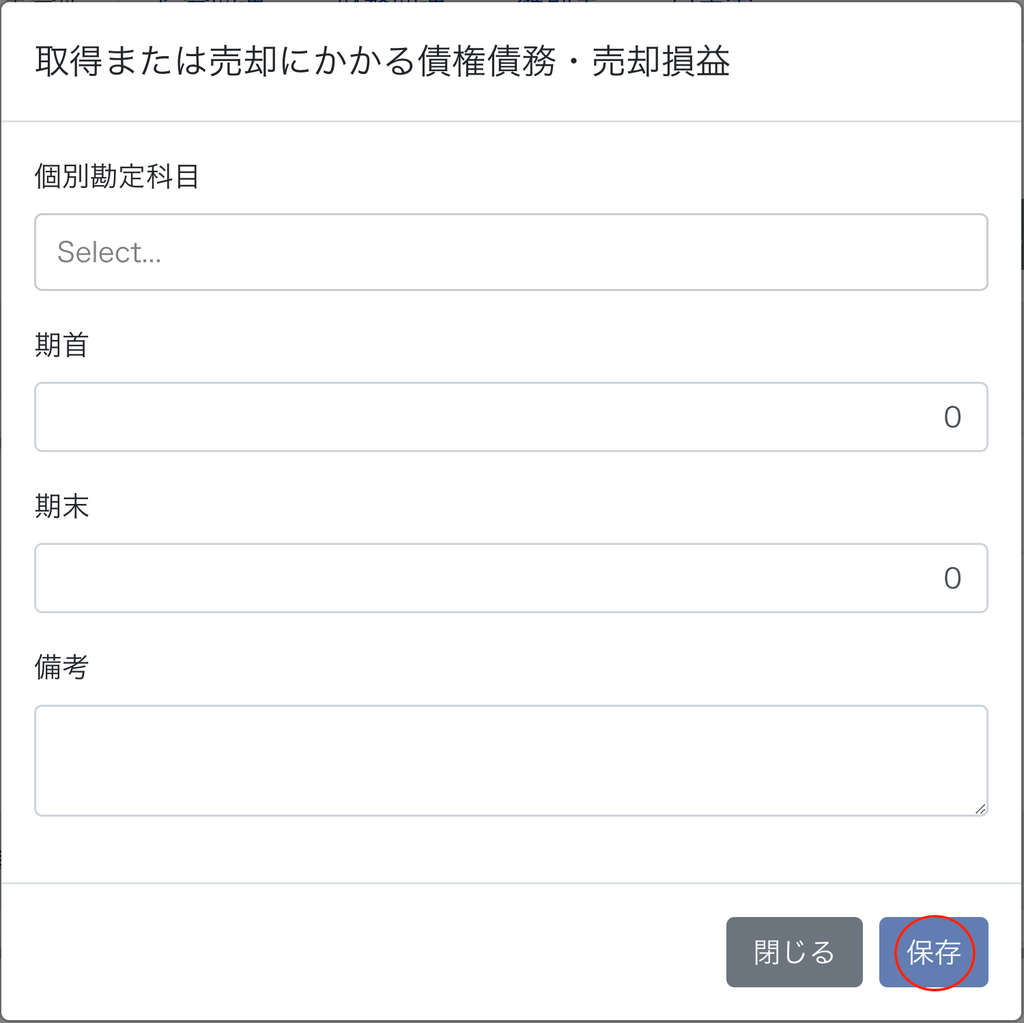 Step5 取得または売却にかかる債権債務・売却損益を入力する