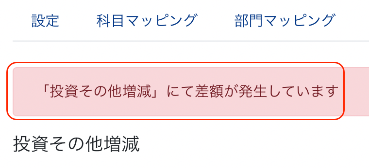 | 投資その他増減 | ・勘定科目(連結科目)名に「有価証券」を含む ・カテゴリが「投資その他の資産」の勘定科目(ただし、勘定科目(連結科目)が「長期固定性預金」、「貸付金」及び「引当金」を含む勘定科目(連結科目)を除く) |