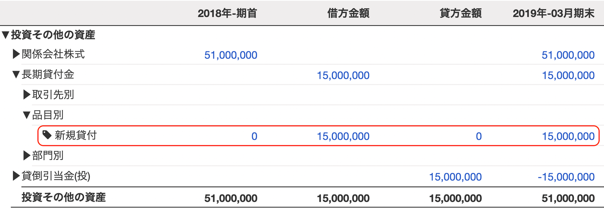 - 例:長期貸付金
