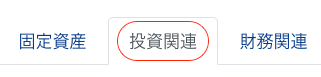 1-1 「個社連結PKG」→「投資関連」タブをクリックします