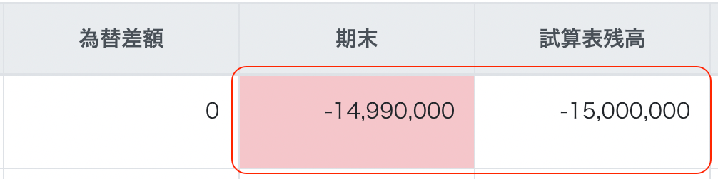 - 取り込まれた時点では「期末」と「試算表」は一致しています