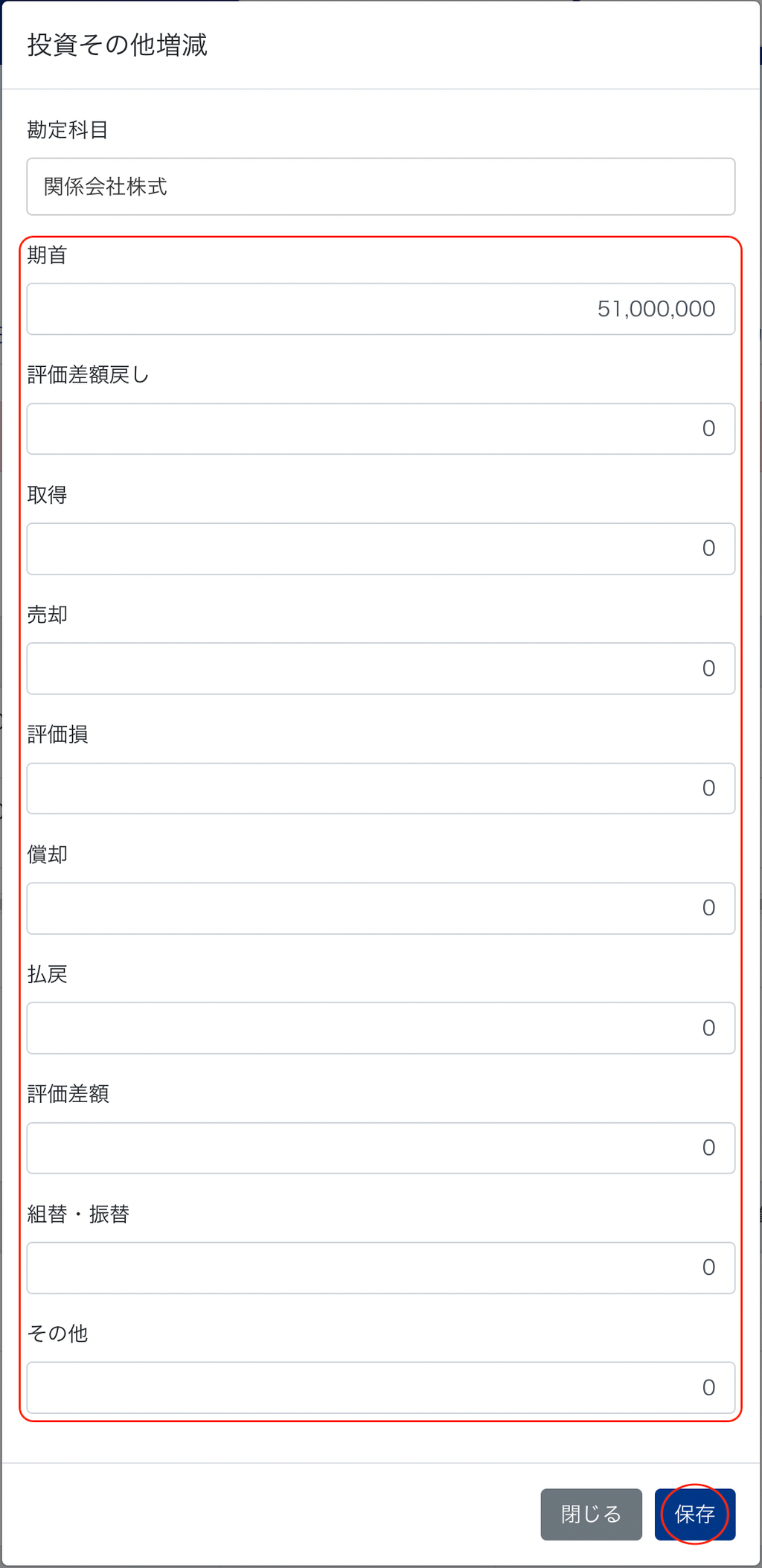 | 評価差額戻し | 取得 | 売却 | 評価損 | 償却 | 払戻 | 評価差額 | 組替・振替 |