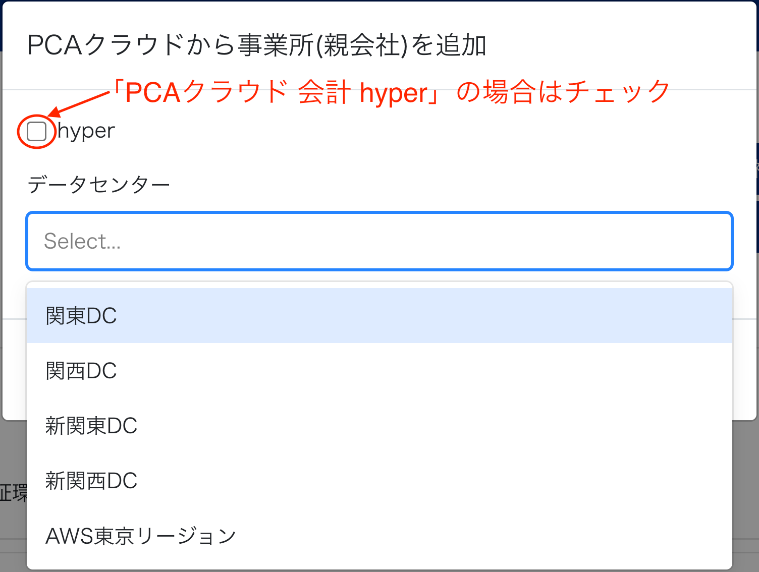 - 「PCAクラウド 会計 hyper」と連携する場合は「hyper」にチェックを入れてください