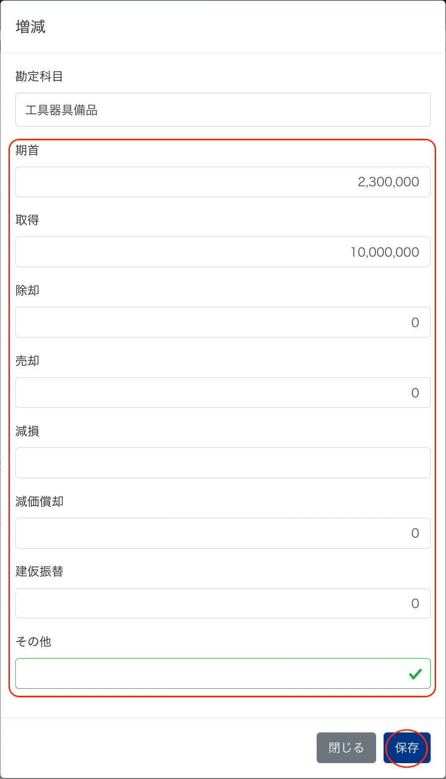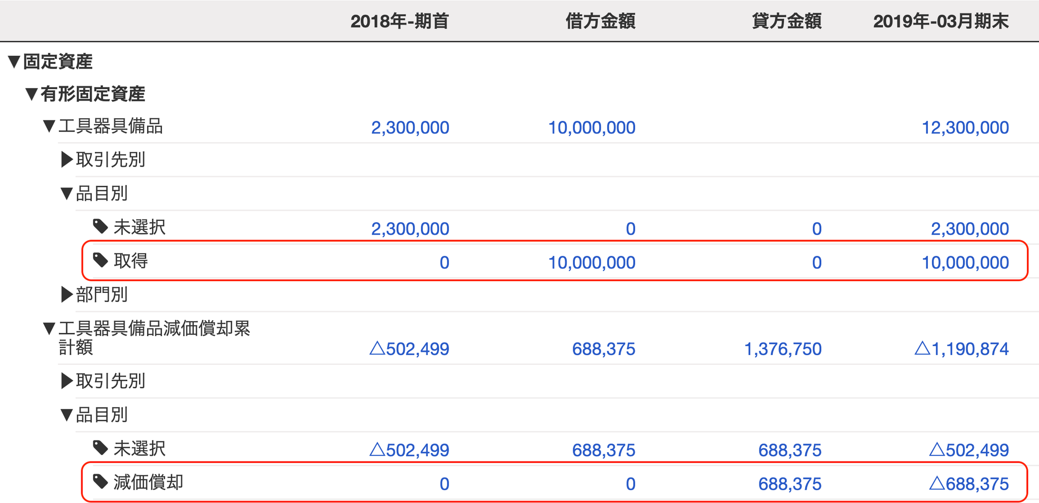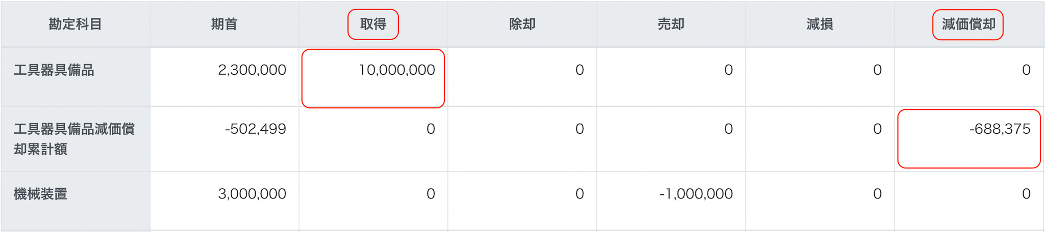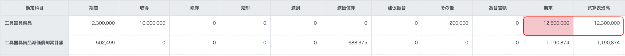 - 例:工具器具備品、工具器具備品減価償却累計額