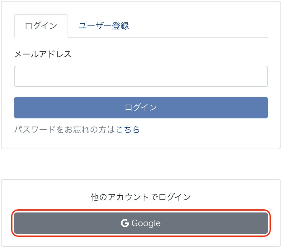 Googleログインの場合は、ユーザー登録もログインも入口は「G Google」ボタンのみになります。