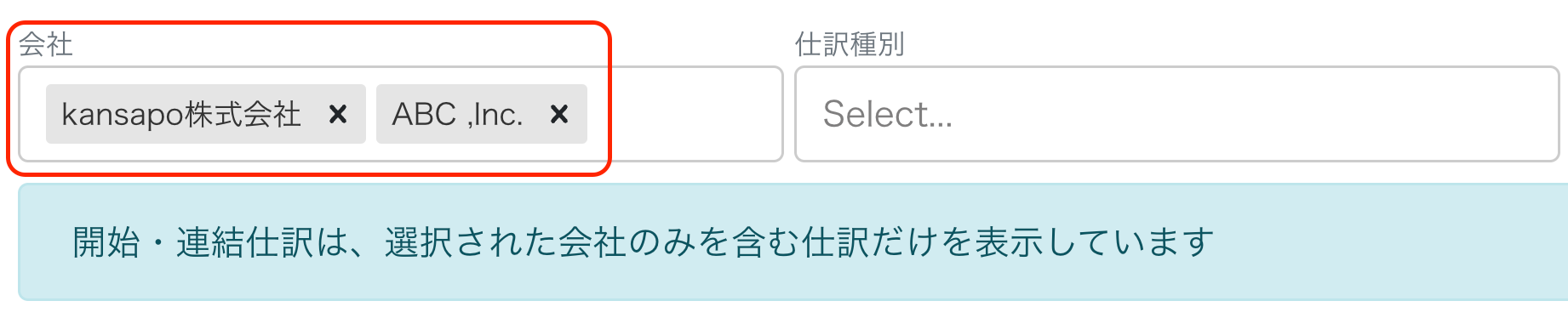 - 開始・連結仕訳ページに遷移し、クリックした金額の勘定科目で絞られた状態で表示されます