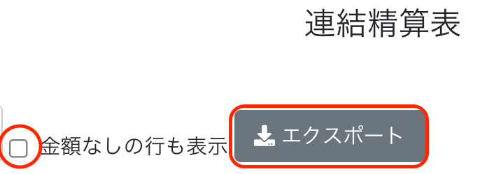 - ただし、出力して加工している場合は、新しい科目が出てきた場合に加工がしづらいため、「金額なしの行も表示」チェックボックスを設けており、こちらをチェックすることで全ての連結科目が表示されます