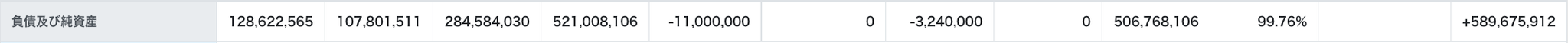 | 資産、負債、純資産科目 | 総資産合計 |